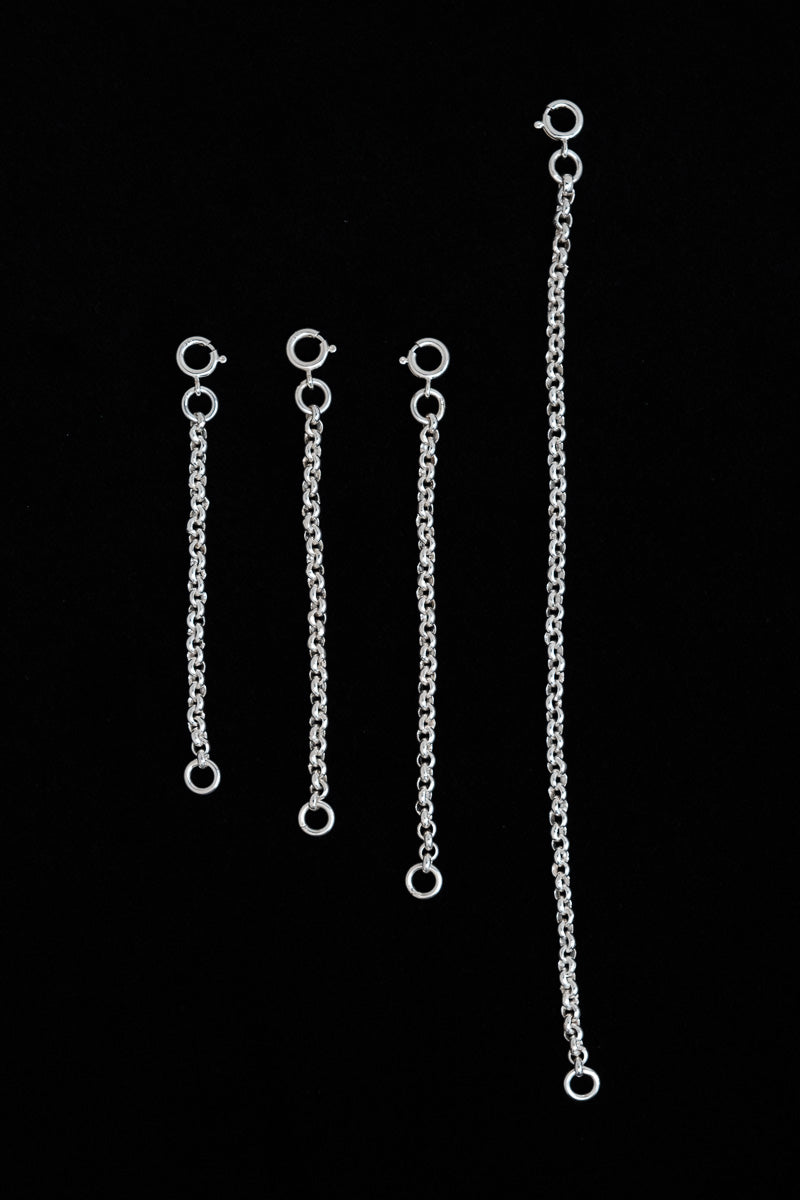 A playful modular chain design made of sterling silver. Wear it however you feel like. Attach it to an earring or earcuff, or connect two or more pieces to create a bracelet, choker or chain. Available in several lengths to suit your next combination.