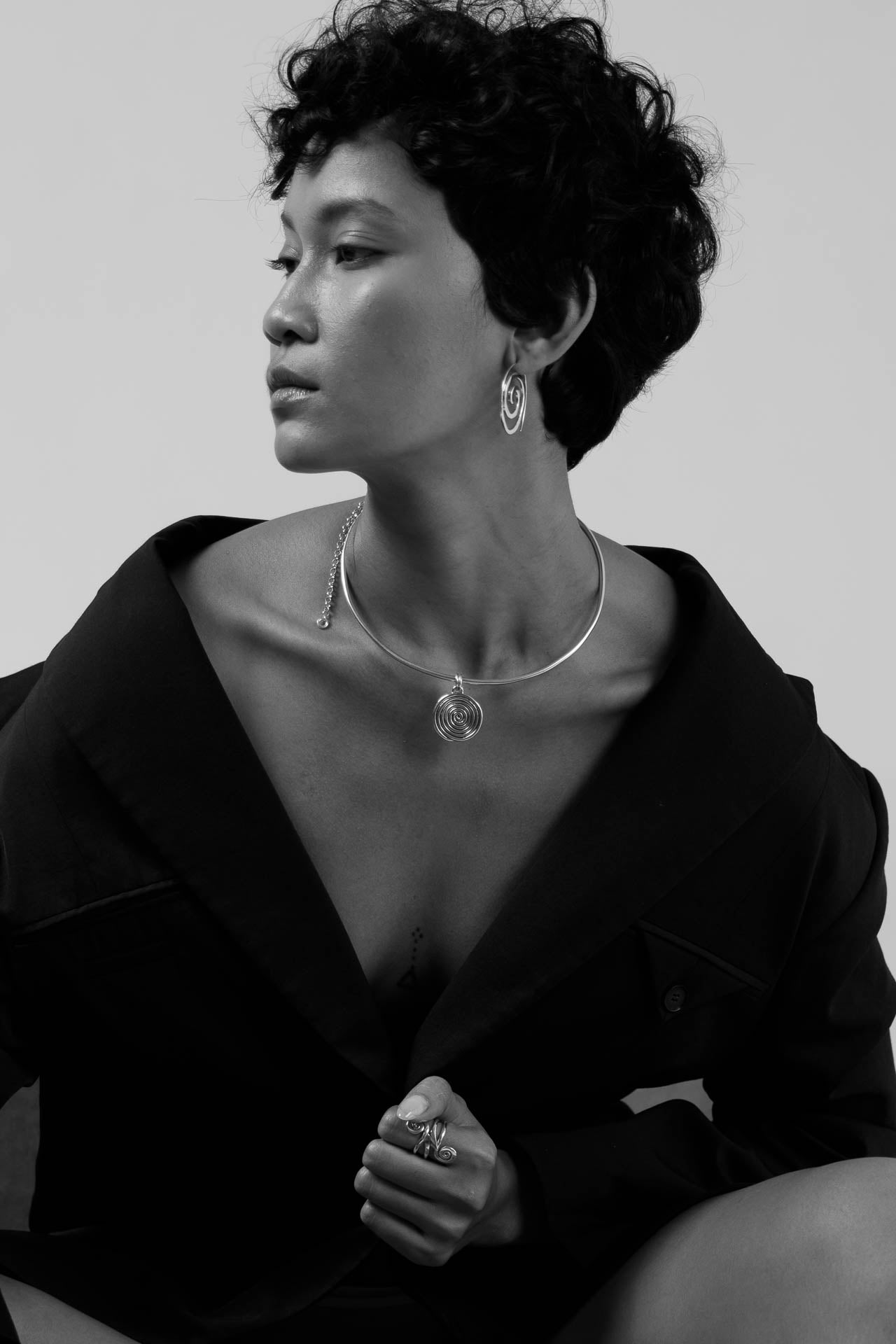 Sculptured spiral pendant made from solid sterling silver.